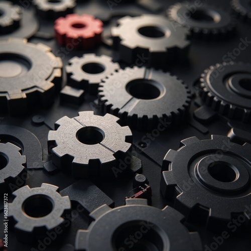 Light-themed abstract image featuring interlinked gears and geometric elements in a futuristic setting