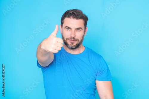 Like concept. Choice Feedback. Male Hand with Thumbs up, like, good and yes. Man with Like finger sign in studio. Hand icon. Guy with Hand sign thumbs up yes like concept.
