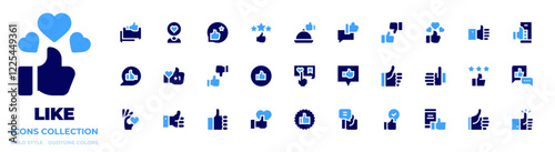 Like icon collection. Bold style. Duotone colors. hand gesture, discussion, feedback, thumbs up, thumb up, follower, customer feedback, disagreement, reviews, like