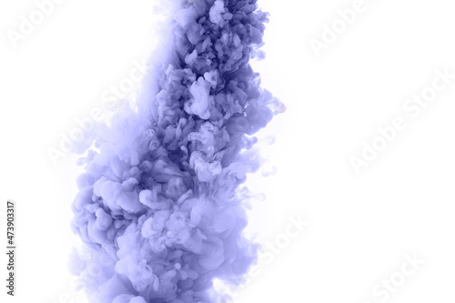 Lilac color background, Color of year 2022 paint falling into water, isolated.
