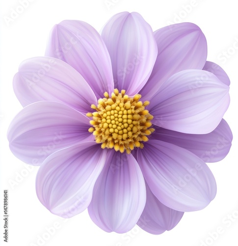 flower, lilac, purple, flower petals, bloom, center, yellow, detail, floral, nature, plant, beauty, pretty, spring, summer, garden, closeup, high-coloured, vibrant, colours, design, illustration, realistic, artistic, digital, image, isolated, single, round, organic, lovely, elegant, delicate, gentle, soft, pastel, art, graphic, picture