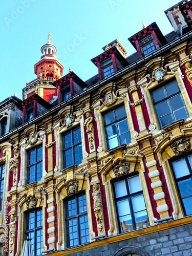 Lille, September 2022: Magnificent facades of the buildings of Lille, the capital of Flanders - Historic Monument : Old Stock Exchange