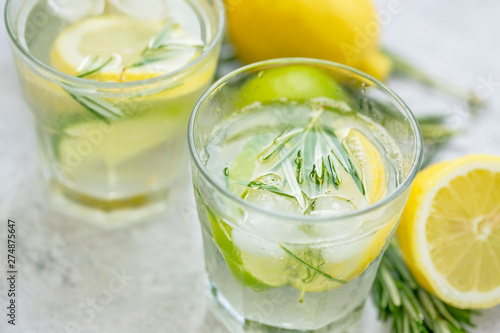 Lime, lemon , rosemary lemonade with ice cubes, refreshing summer drink