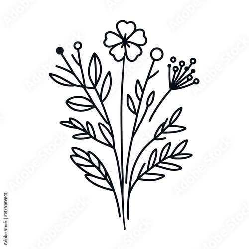 flower, bouquet, nature, plant, illustration, tree branch, blossom, minimalist, vignetting, abstract, drawing, line, art, black-and-white, modern, simple, outline, flora, vintage, spring, summer, decoration, flower, leaf, decor, design