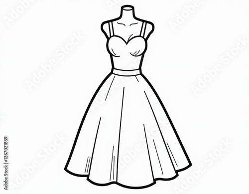 Line Art Dress Design, Fashion Sketch, Elegant Gown Illustration