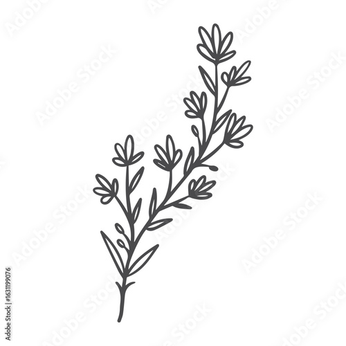 LINE ART HAND DRAWN LEAF BRANCH AND FLOWER