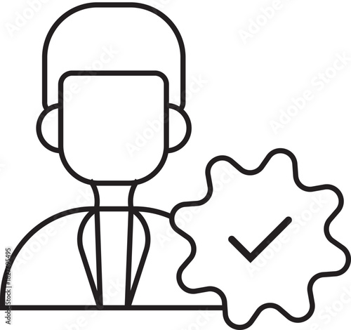 icon, symbol, graphic, vector, illustration, line, art, drawing, outline, black, white, simple, minimalist, abstract, pictogram, signs, shape, person, user, profile, avatar, human, man, head, shoulder, gear, cog, cogwheel, star, badge, check, checkmark, tick, mark, verification, certified, certification, approved, approval, validation, quality, assurance, control, expert, expertise, professional, specialist
