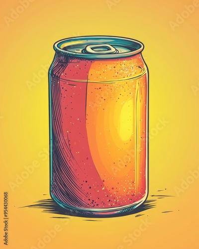 Line art illustration featuring a warm gradient design of a cartoon style beer can