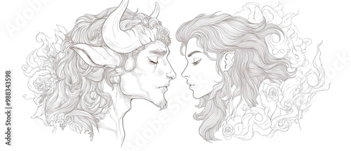 Line art illustration featuring the zodiac signs Taurus and Leo