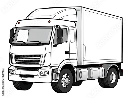 transport, delivery, truck, vehicle, cargo, box, white, isolated, vector, shipping, commerce, logistic, van, transportation, outline, side, wheel, automotive, commercial, empty