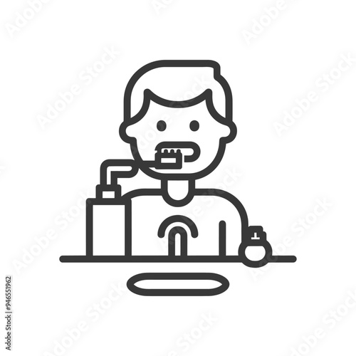 person, brushing, teeth, bathroom, morning, hygiene, routine, dental, care, oral, health, clean, smile, fresh, breath, water, sink, faucet, toothbrush, toothpaste, mouth, happy, healthy, habit, daily