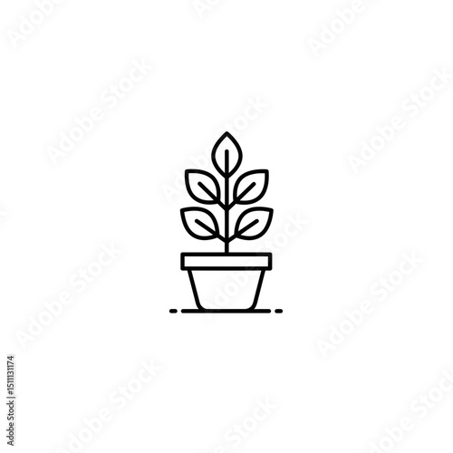 Line art illustration of a potted plant in minimalist style