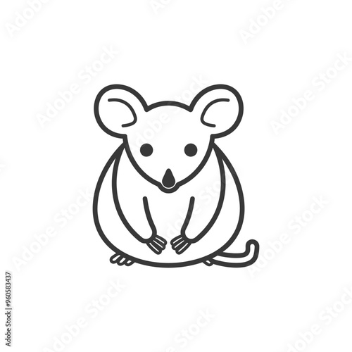 mouse, rodent, animal, mammal, cartoon, line, art, illustration, sitting, cute, small, furry, tail, ear, whisker, eye, nose, paw, black, white, simple, graphic, design, isolated, background