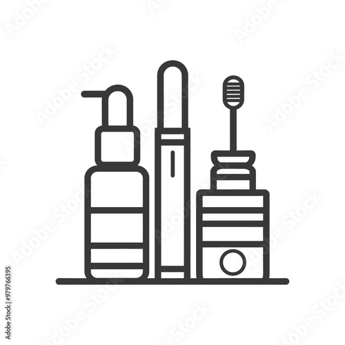 bottle, container, dispenser, design, drawing, illustration, line, outline, product, toiletry, beauty, care, cosmetic, lotion, make-up, mascara, personal, skincare, soap, laundered, water, black, white, background, simple