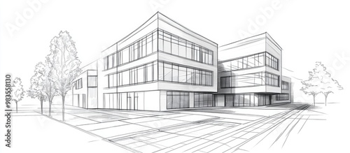 Line art of a building design showcasing intricate architectural elements and clean lines