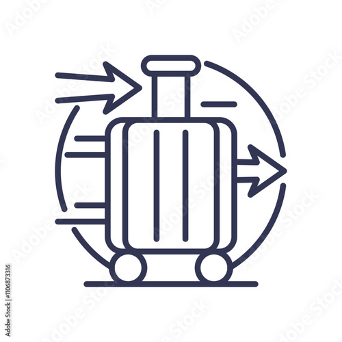 Line art of a suitcase with arrows, symbolizing travel and movement.