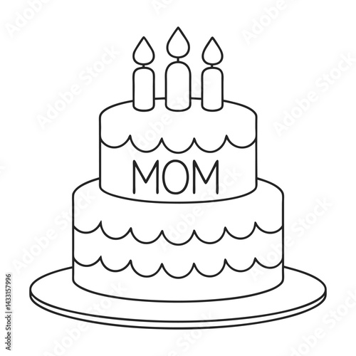 Line Art of Birthday Cake with Candles and 'Mom' Text Decoration