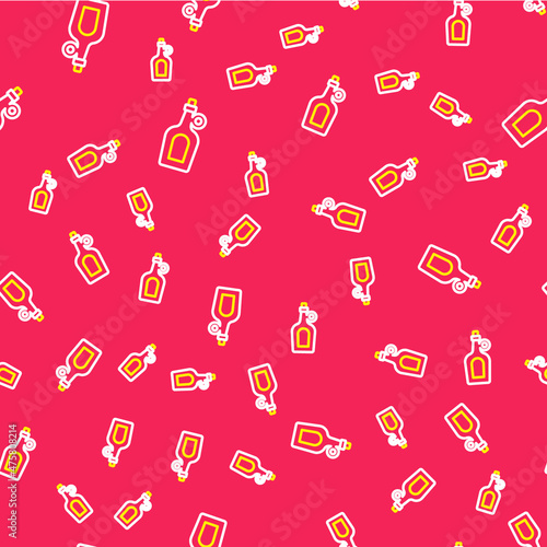 Line Bottle of maple syrup icon isolated seamless pattern on red background. Vector