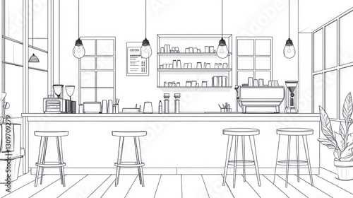 hot drink, shop, interior, cafes, design, drawing, line, architecture, eatery, vignetting, modern, barista, cafes, illustration, background, empty, interior design, sketching, furniture, bar, line art, space, modern architecture, cafes, creative, outline, retail