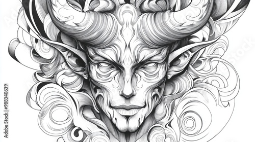 tattoo, art, illustration, devil, horn, drawing, line, prominent, vignetting, creative, fantasy, design, character, symbolism, culture, mystic, dark, imagery, contour, artwork, bold, edgy, ink, style, artistic, devilish, rebellious, figure, ornament, graphic, detailed