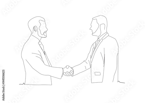 line drawing two businessman shaking hands. Business growth concept.