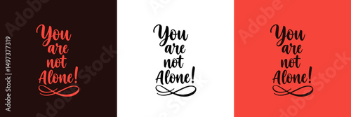 Line drawing with motivational quote "You are not alone!" on black, transparent, and red backgrounds