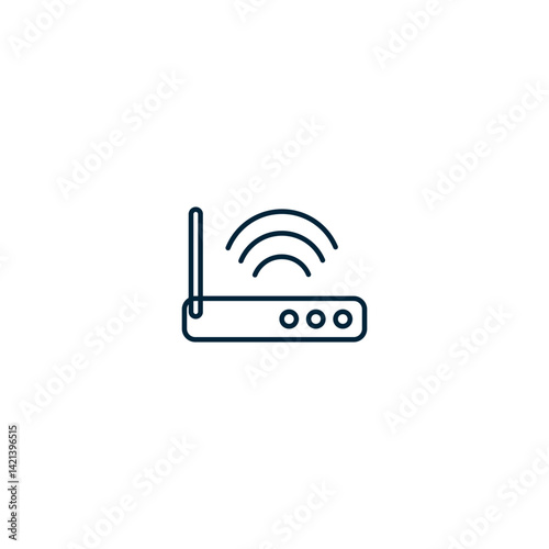 Line icon of a wireless WiFi router. Minimalist outline style representing internet connection, home networking, or wireless communication. Vector illustration isolated on a white background.