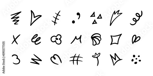 Line movement element set, emotion graphic effects, decoration icons. Doodle line elements, arrow, emphasis, heart, wind, zigzag, sparkle. Hand drawn Anime emotion, express shape.