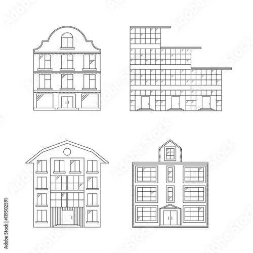 linear, building, architecture, urban, line, house, city, outline, town, contour, element, home, landscape, estate, tower, vector, symbol, icon, design, signs, illustration, graphic, concept, set, exterior, modern, office, property, isolated, minimal, background, residential, construction, block, street, art, emblem, wall, window, roof, shop, style, object, facades, downtown, business, thin, collection, door