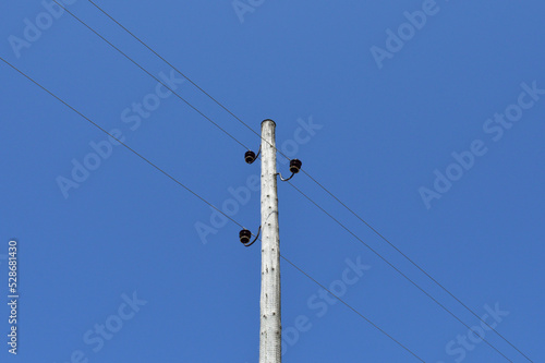power, sky, electricity, wire, electric, blue, cable, energy, wire, line, tower, high, voltage, wooden, communication, phone