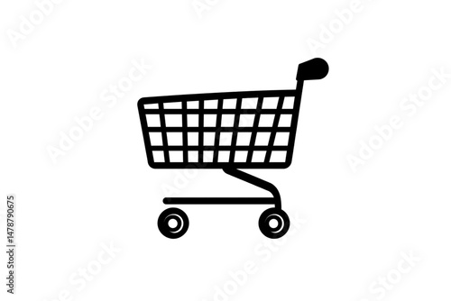 Line-style trolley cart icon for digital shopping, emphasizing movement, transport, and market usage, isolated on a transparent background