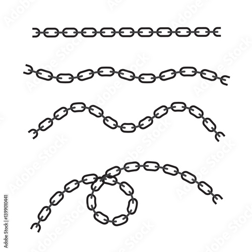 linked, chain, form, metal, connection, curve, repeating, segment, icon, vector, illustration, set, link, loop, element, structure, bold, shape, black, graphic, pattern, repetition, hard, curve, direction, symbol, item, industrial, multiple, circle, strong, construction, flow, motion, wave, winding, length, flexibility, part, looped, secure, continuity, path, steel, bonding, seamless, binding, strength, movement