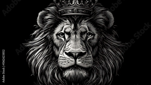 lion, wild, mane, wearing, crown, royalty, strength, rebellion, king, engraving, endangered, portrait, dangerous, black, wildlife, african, face, hunter, nature, raster, mammal, imitation, felino, zoo, park, beautiful, power, board, cat, vignetting, pride, white, fur, male, head, leo, animal, carnivore, safari, beast, generative, closeup, big, predator, ai, panthera, africa