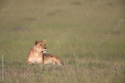 Lioness Sitting on a Mount at Masai Mara Game Reserve,Kenya,Africa