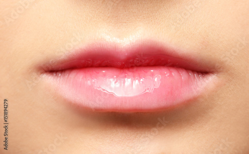 Lips of beautiful young woman, closeup