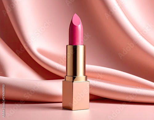 Lipstick stands tall on silk backdrop in a pink hue