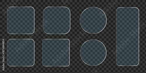 Liquid Glass Frames and Buttons Set Isolated on Transparent Background, Realistic Vector UI Elements vector.