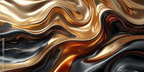 Liquid Gold Metallic Abstract Background with Organic Shapes (8K Seamless Dark Mode Design)