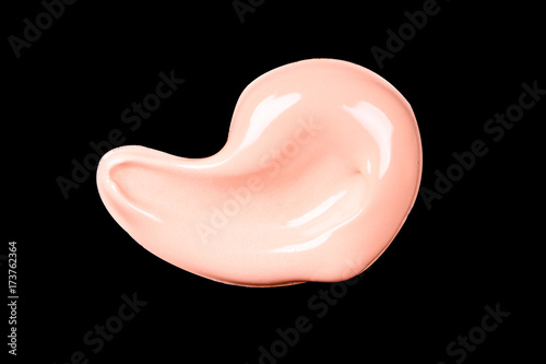 Liquid makeup foundations smear drop isolated on black background.