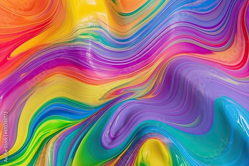 Liquid rainbow wavy plastic texture. Wrinkle silicone sheet. Generative AI