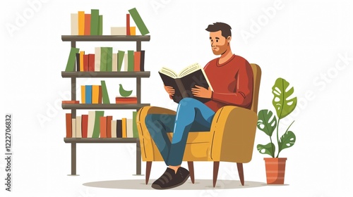 Literature Enthusiast Enjoying Reading a Book - Male Booklover Character Delights in Literary Joy