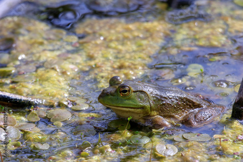 Lithobates catesbeianus - a series of photos showing the impressive amphibian basking
