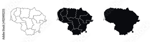 lithuania, europa, isolated, background, symbol, country, icon, vector, signs, border, nation, silhouette, outline, black, shape, geography, travel, map