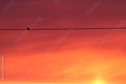 sky, sunset, blue, cloud, cloud, nature, sun, bird, landscape, wire, bird, line, light, lake, water, electricity, plane, cable, sunrise, travel, red, wire
