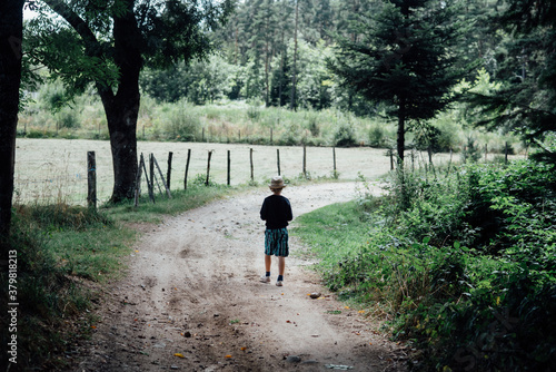 path, children, france, faceless, dirt, country, childhood, anonymous, alone, adventure, copy space, copy space, walk, tree, summer, short, road, outside, outdoors, open air, little, hill, hike, hat, green, caucasian, white, boy, male, person, people, children, children, children, youth, youth, youngster, youngster, minor