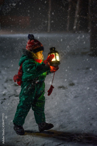 evening, snow, boy, children, lantern, light, street, night, walk, aglow, view, cold, winter, flames, autumn, dawn, blue, magical, adventure, clothes, person, people, dreaming, city, light, lamp, urban, covered, illuminated, standing, idea, concept, children, beautiful, holding, mystical, green, red