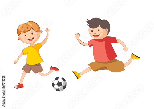 boy, children, children, football, team, compete, run, soccer, pastime, ball, sport, play, fun, activity, goal, game, young, player, action, kick, competition, active, match, little, childhood, equipment, practice, hobby, motion, male, athlete, entertainment, excitement, football player, leisure, smile, person, fit, cheerful, physical, movement, excitement, character, schoolboy, isolated, cartoon, vector, illustration, white