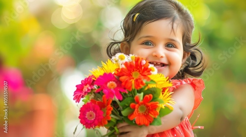 little child holding flowers