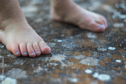 little girl barefoot in summer on limestone