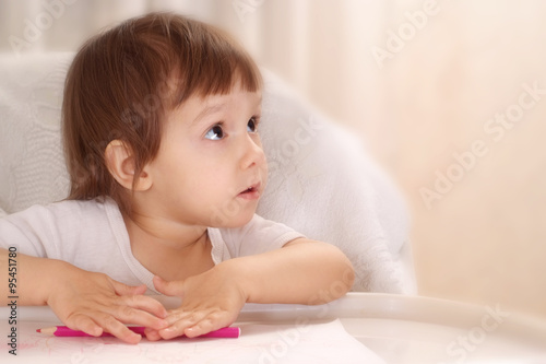 Little girl drawing at home